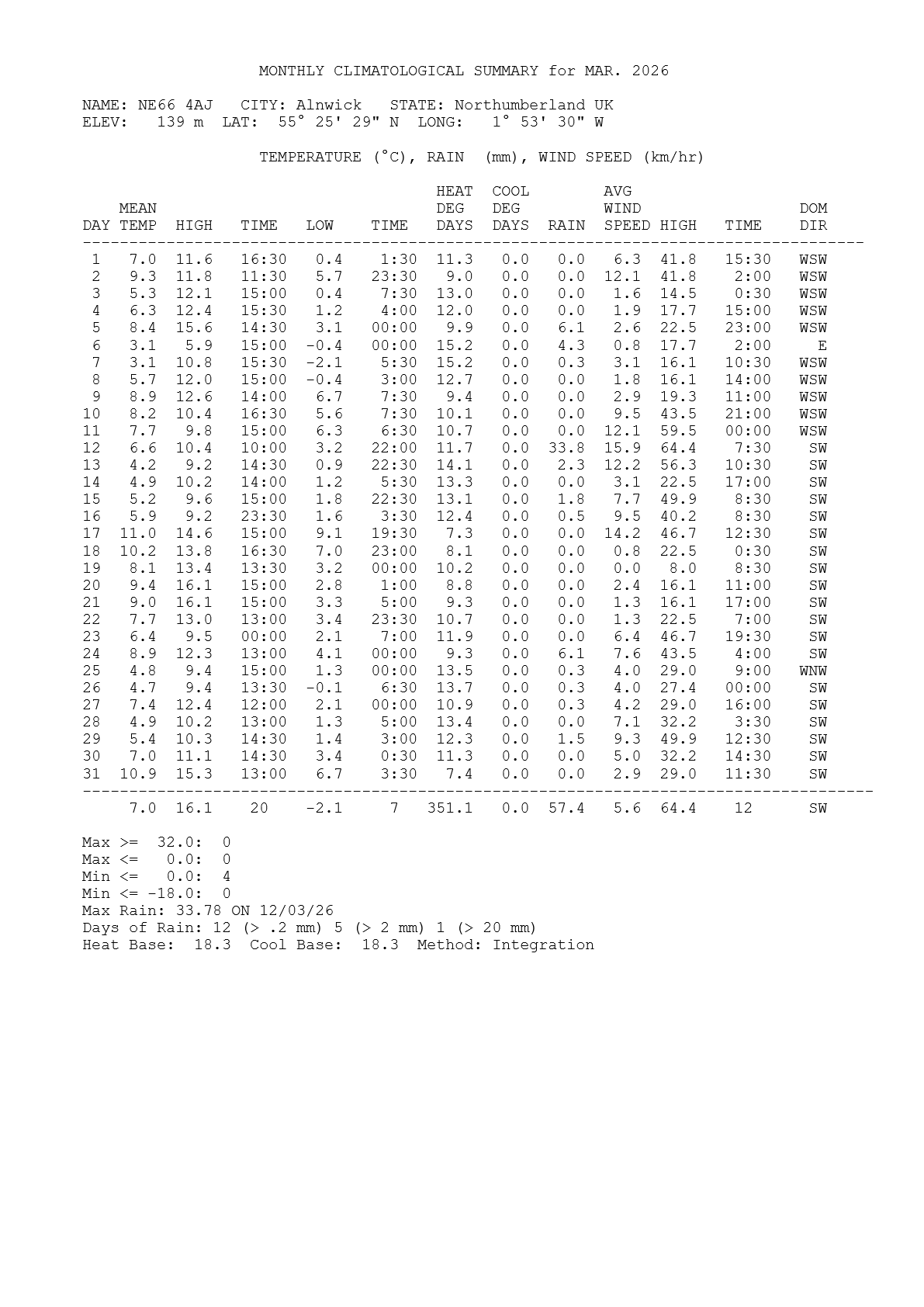 The most noticeable aspect of this month was the rainfall; it was the wettest January in Glanton for a decade and at 210mm it was over twice as much as last January.